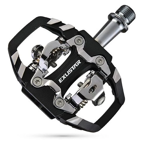 Sturdy foot pedals Exustar with cage and double-sided SPD mechanism.