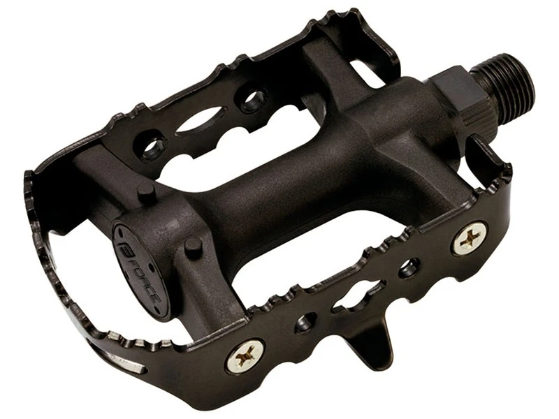 Classic plastic pedals with steel cage, ball bearings. The serrated cage prevents slipping shoes. Weight 386 g