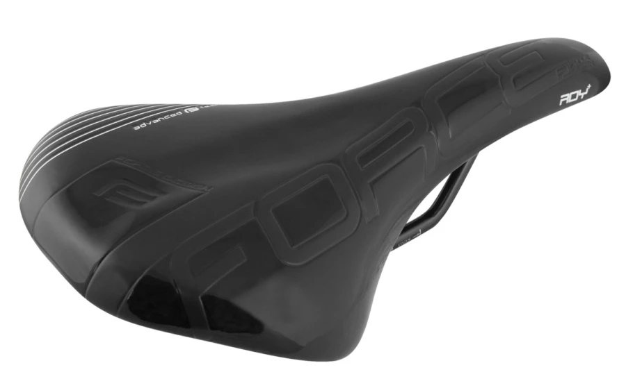 Men’s saddle of sporty shape suitable for mountain and road bike.