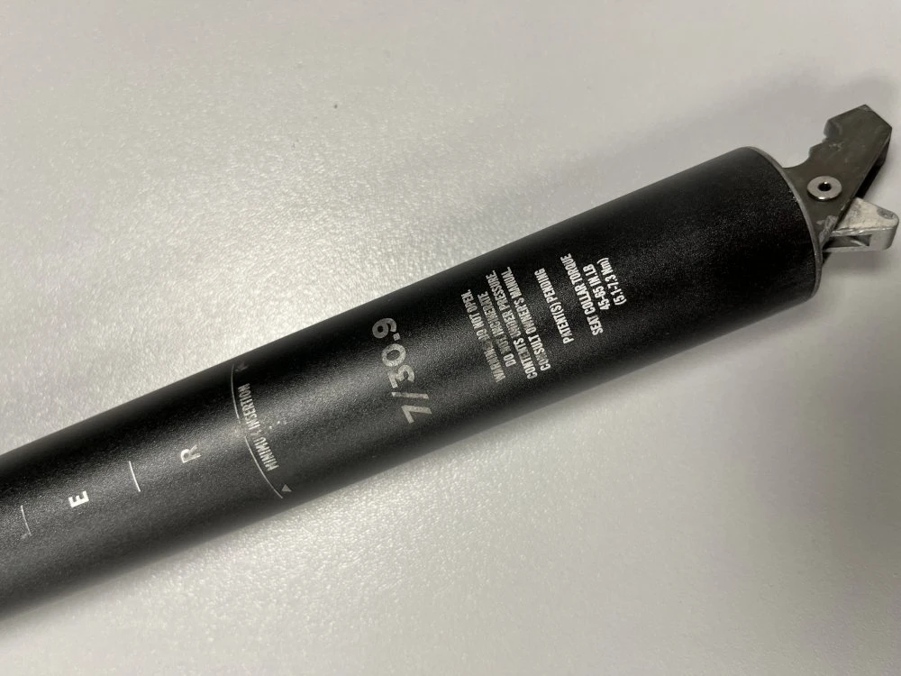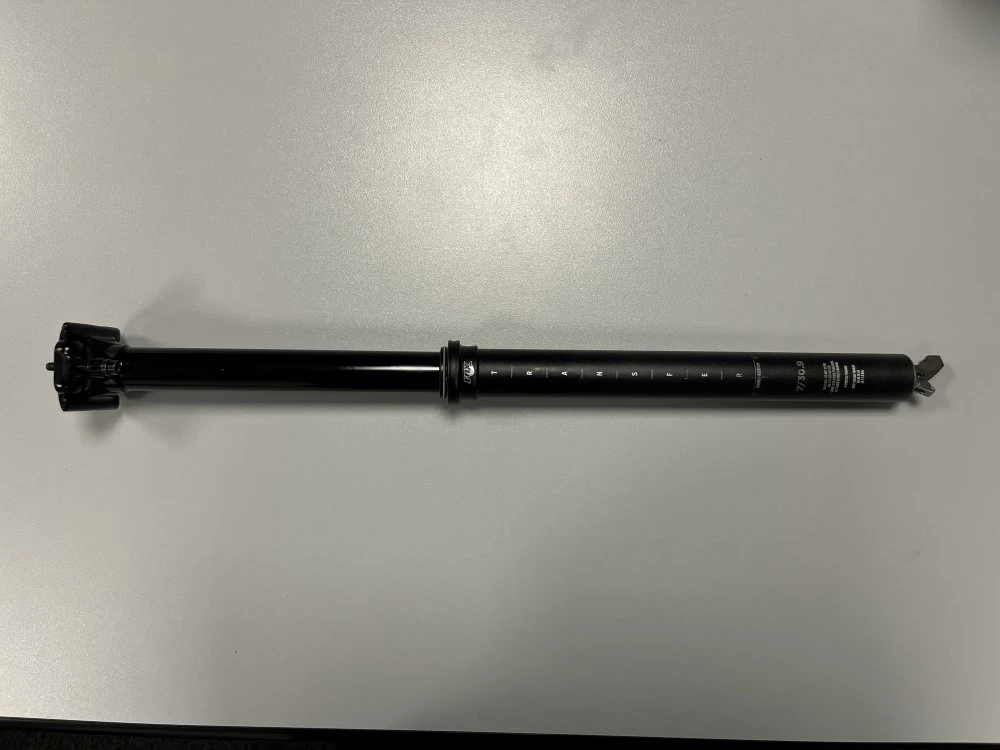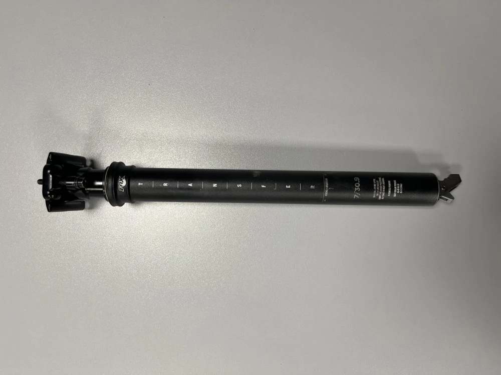 Fox Transfer is a cable-operated hydraulic telescopic seat post with continuous height adjustment. The force of pressing the lever determines the speed of return to the extended position – low force = slow return, high force = fast return.