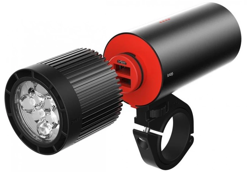 Unique 2000 L modular front light with detachable head and 10,000 mAh power bank. The light head can be easily replaced with another one as needed – stronger or weaker. The integrated power bank ensures enough energy on the go for other devices – phone, navigation, action camera, etc.