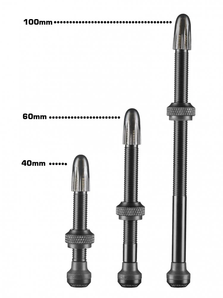 Super light aluminum tubeless valves with a rubber base, which guarantees perfect tightness between the valve and the rim. Pack of 2 pcs. Length 40 mm.