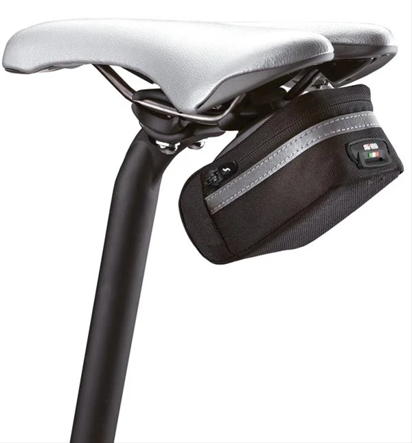 Elegant Seat bag to spare the soul and tools. Made of Cordura ®, with a reflective stripe, clamping Roller 2.1, weight 128 g, volume 350 ccm, 3M ® reflective stripe with zipper improving visibility, LadyStyle are built bead lifting lever