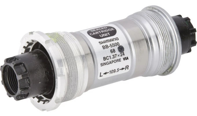 Encased Shimano 105 BB-5500 center axle for Octalink road cranks.