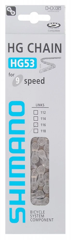 Mountain or road bike chain from the Shimano Deore M590 / Tiagra 4500 set suitable for driving in a configuration with a 9-speed cassette.