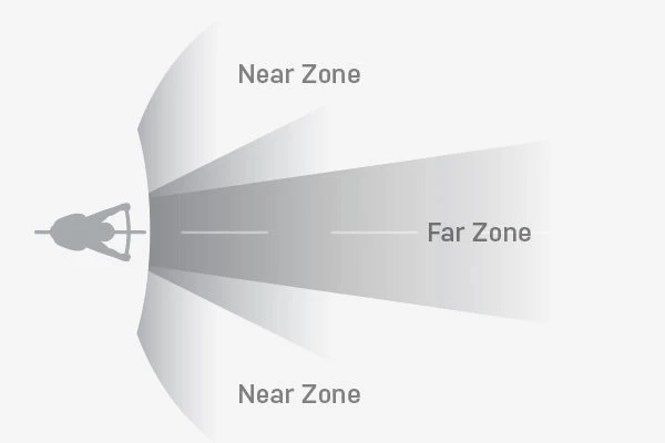 A dual-zone refractor lens provides a bright main beam that is directed to avoid dazzling pedestrians and traffic, while a weaker wide-anglelighting increases road safety.